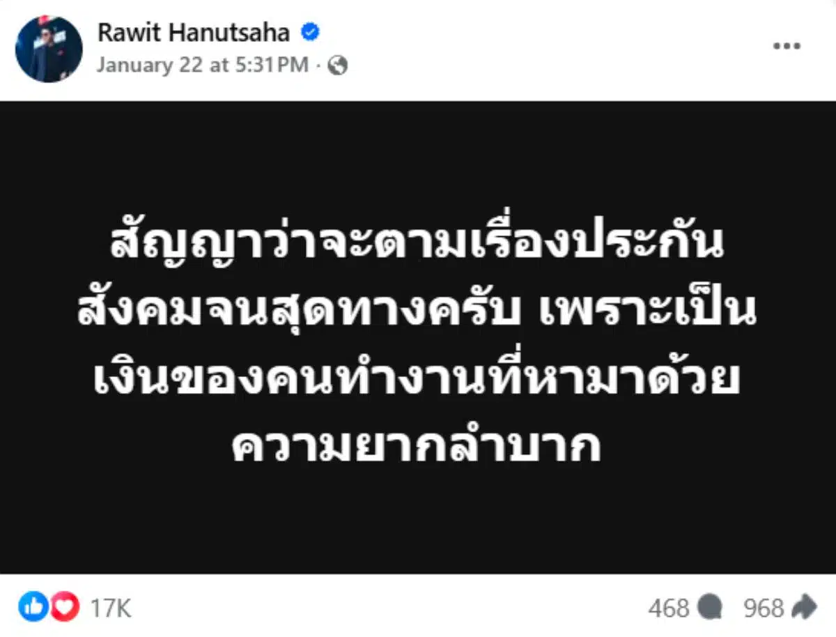 รวมถึง เพดานเงินสมทบใหม่ 875 บาท ที่มีผลแล้ว ตั้งแต่วันที่ 1 ม.ค.2569 ผู้ประกันตนที่มีเงินเดือน 17,500 บาทขึ้นไป ต้องแบกรับภาระจ่ายเงินเพิ่มจาก 750 บาท เป็น 875 บาท ท่ามกลางภาวะเศรษฐกิจฝืดเคือง แม้จะมีคำชี้แจงว่าเพื่อเพิ่มบำนาญในอนาคต แต่สำหรับหลายคน “เงินสดในวันนี้” สำคัญกว่าสิทธิประโยชน์ในวันหน้า