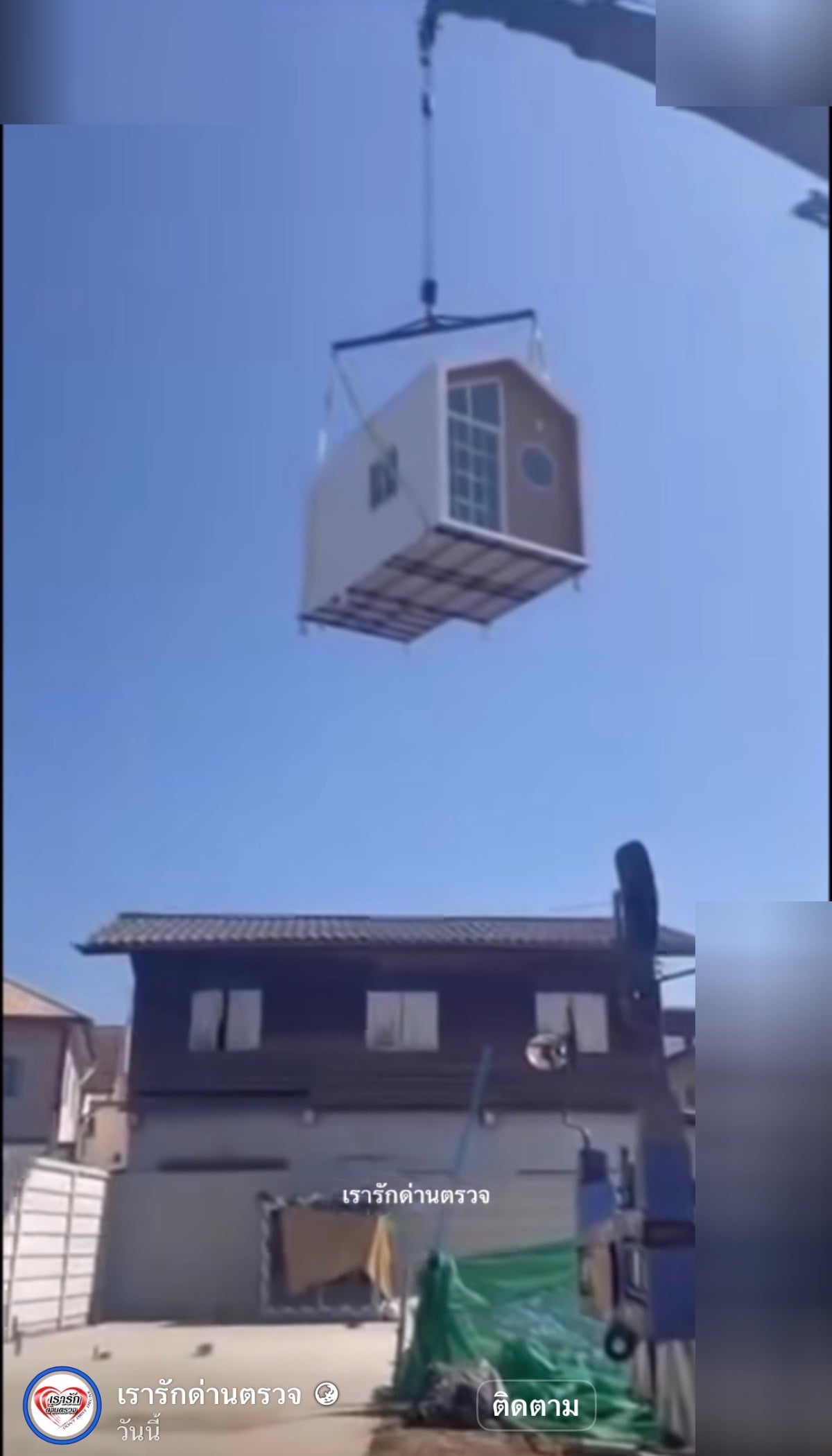 คลิประทึก! อุทาหรณ์เครนยกบ้านน็อกดาวน์ จังหวะชะล่าใจนิดเดียว ตู้มสนั่น!