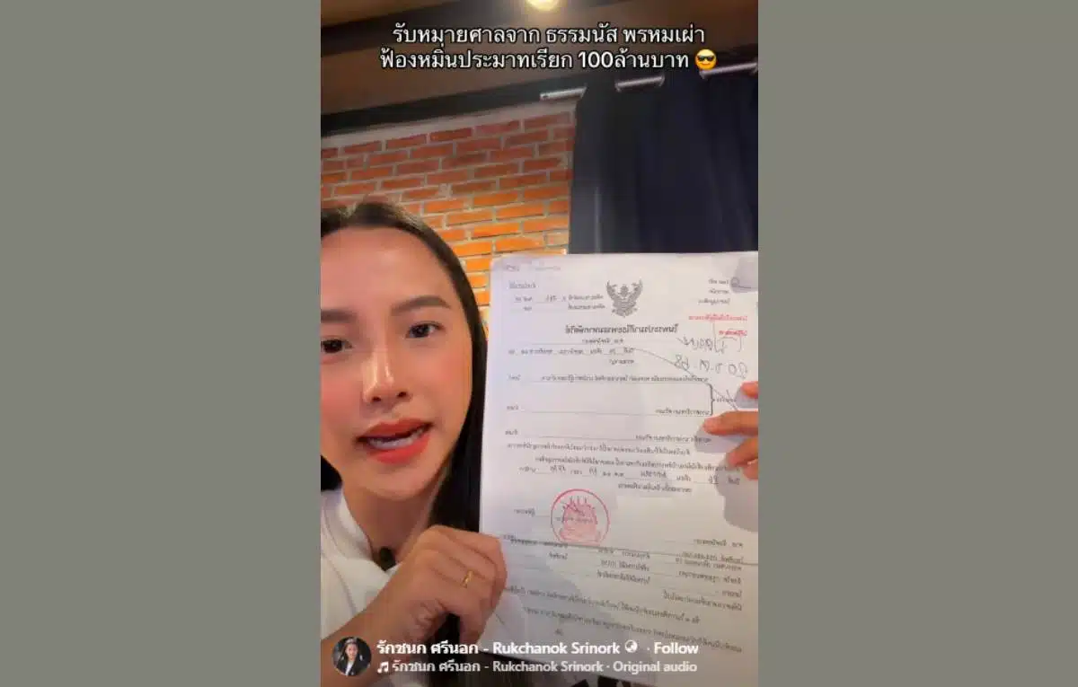 วันนี้ (25 ม.ค.69) “ไอซ์” รักชนก ศรีนอก พรรคประชาชน โพสต์เฟซบุ๊กเปิดเผยว่า ตนเองได้รับหมายศาลจาก ร้อยเอกธรรมนัส พรหมเผ่า รองนายกรัฐมนตรี และรัฐมนตรีว่าการกระทรวงเกษตรและสหกรณ์ ในข้อหาหมิ่นประมาทพร้อมเรียกค่าเสียหายสูงถึง 100 ล้านบาท