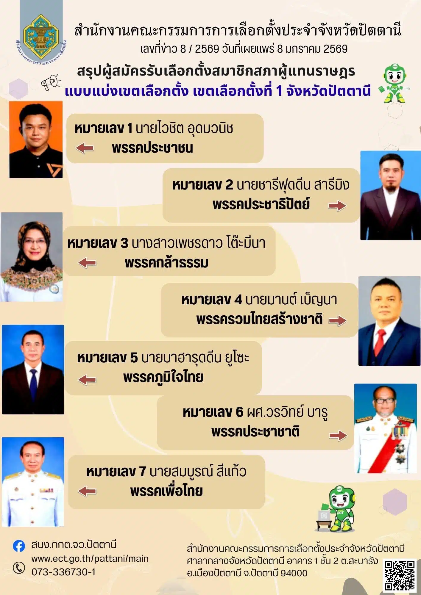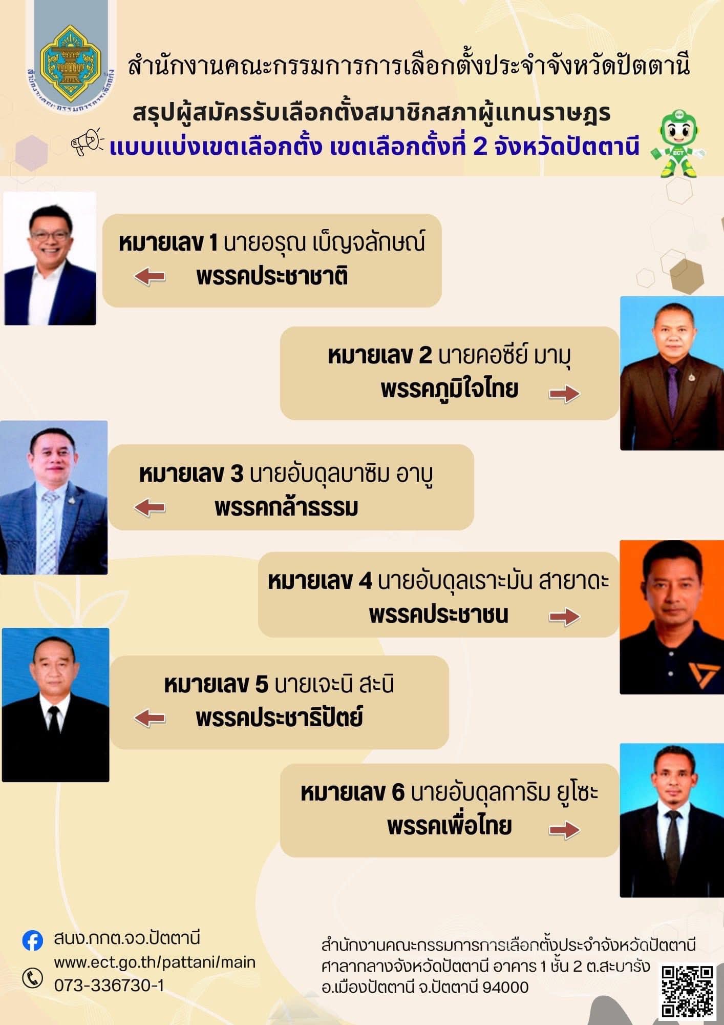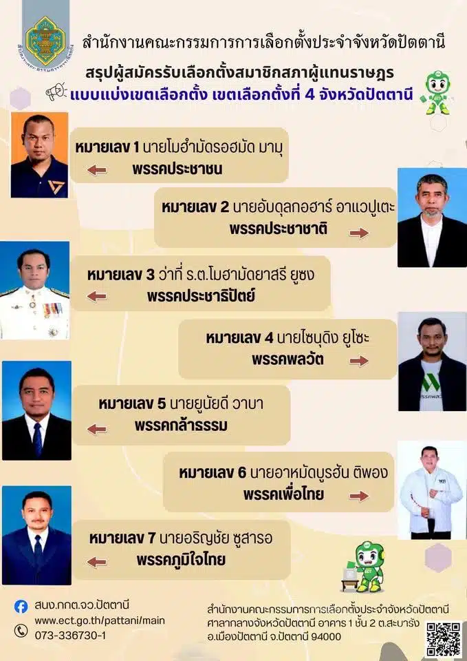 รายชื่อผู้สมัคร ส.ส. ปัตตานี เช็กเบอร์-พรรค 5 เขต : เลือกตั้ง 2569