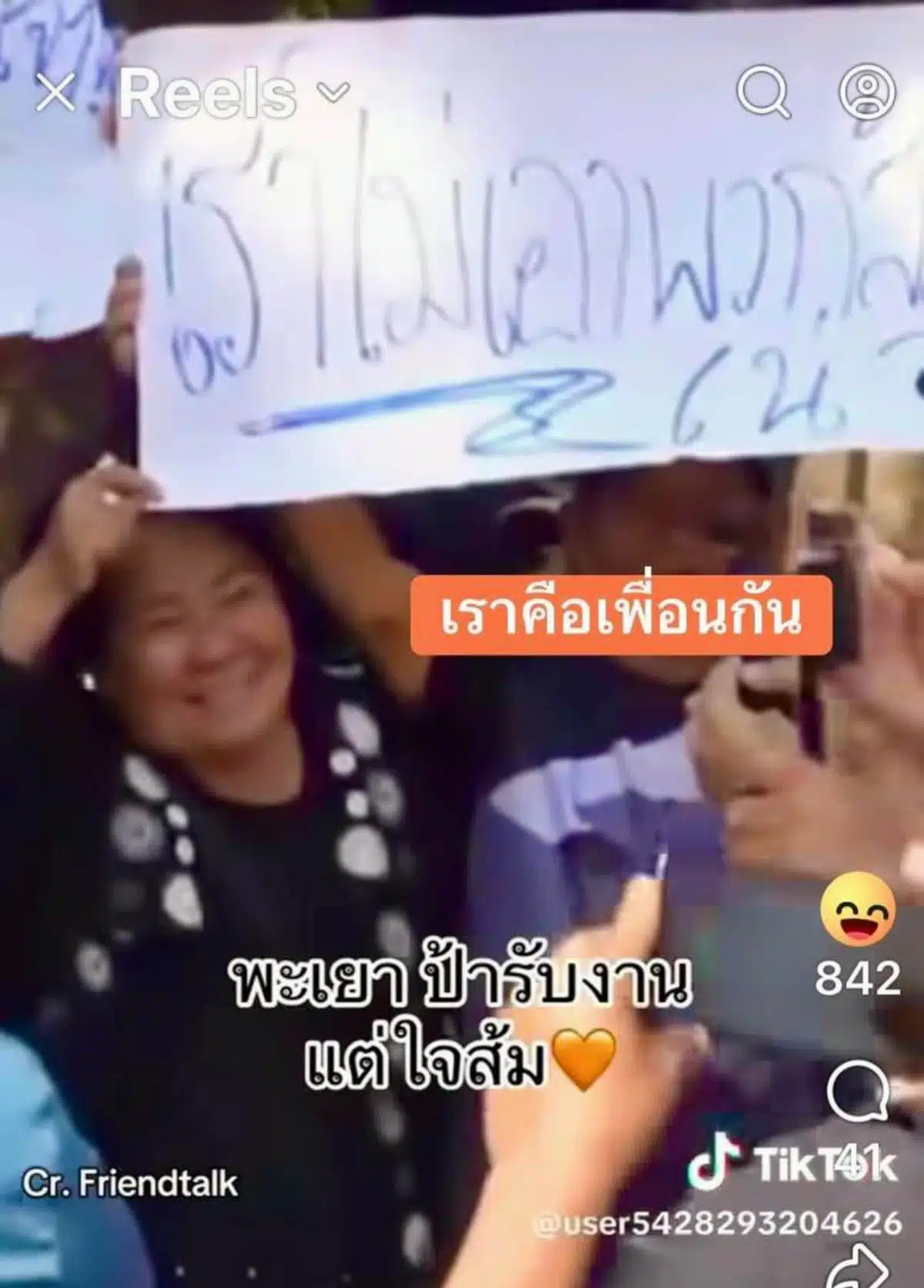 ป้าอีกคนที่รับงานมาชูป้าย แหวกตัวมาขอเซลฟี่ แล้วกลับไปทำหน้าที่ต่อ จนเป็นที่สนุกสนานครื้นเครงทั้งโซเชี่ยล ป้าชัดเจน รักก็ส่วนรัก หน้าที่คือหน้าที่ หัวใจมันปิดกั้นกันไม่ได้ สิ่งนี้มันแสดงให้เห็นว่าอุดมการณ์ของพรรคประชาชนเริ่มแทรกซึมเข้าไปในชีวิตประจำวัน จนกำแพงของการจัดตั้ง IO หรือการจ้างวาน เริ่มพังทลายลง