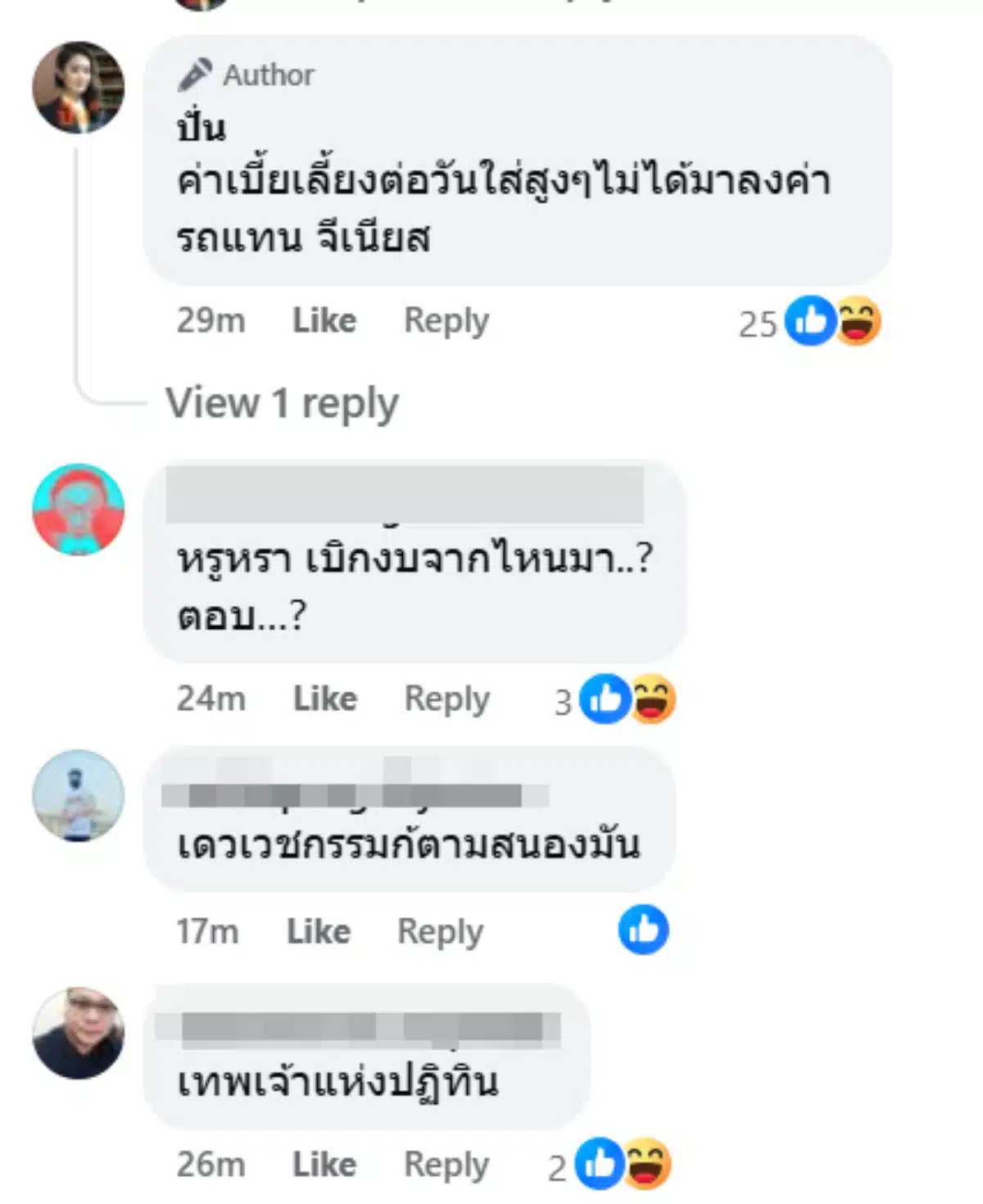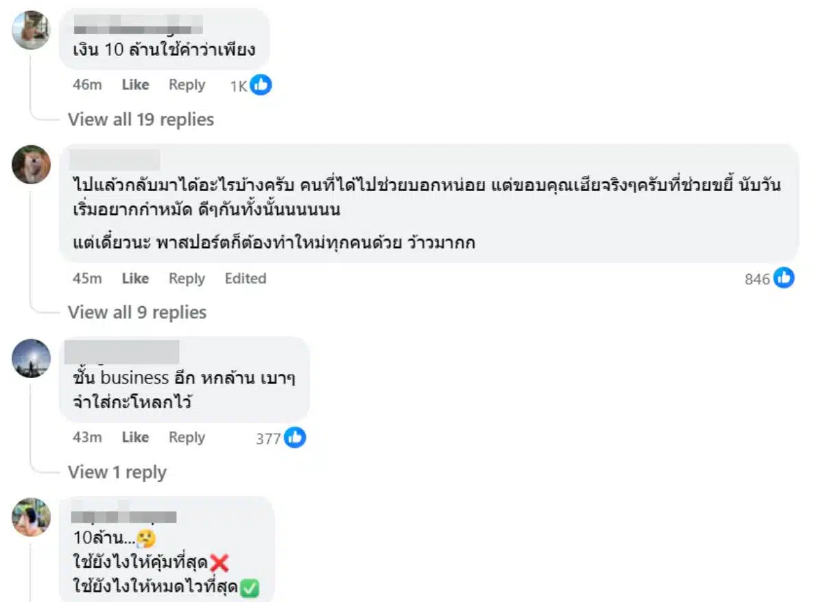 “สำหรับคณะติดตามไม่น้อยน้อยหน้ามีตั้งแต่บิสเนสคาสไปจนชั้นอีโค่ นอนโรงแรมหรูคืนละหมื่นสอง เบี้ยเลี้ยงสามพันต่อวัน ค่ารถสี่หมื่น (พวกแม่งคงนั่งโรสรอยส์) สุดท้ายที่เงินให้ค่าซูวีเนียร์ฝากคนที่เมืองไทยอีกแปดพัน”