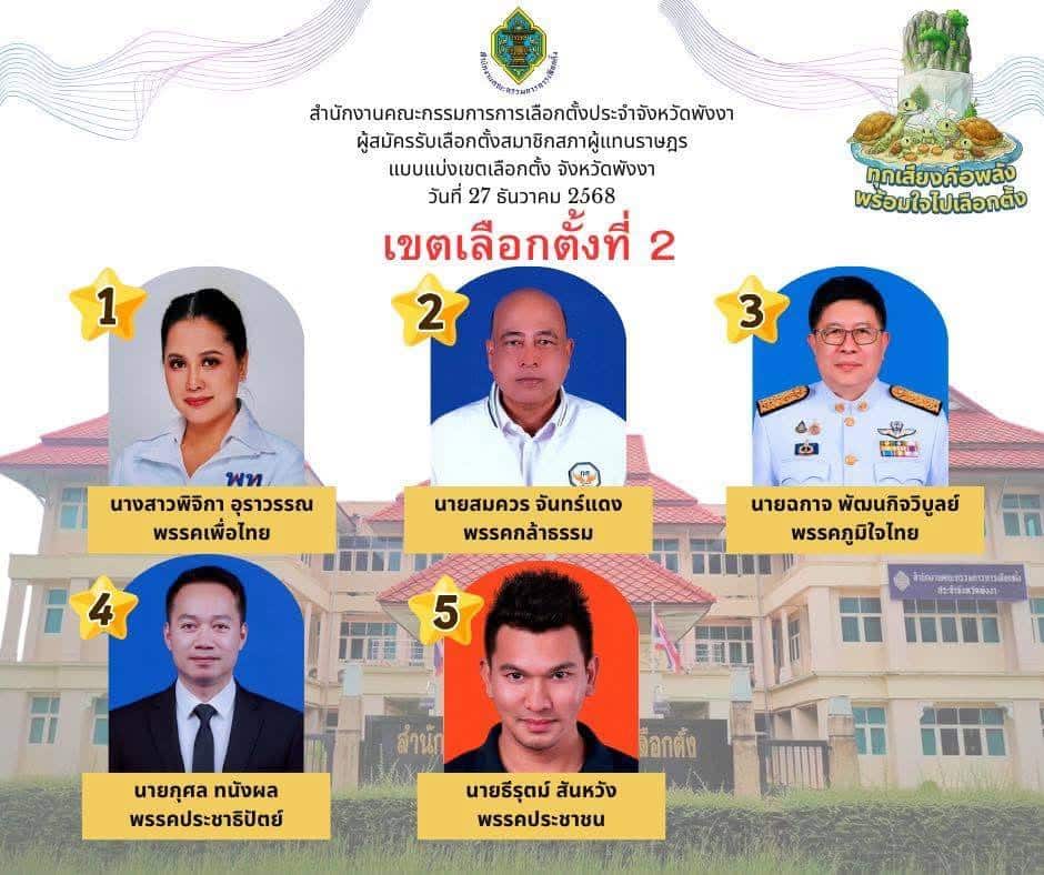 รายชื่อผู้สมัคร ส.ส. พังงา เช็กเบอร์-พรรค 2 เขต : เลือกตั้ง 2569