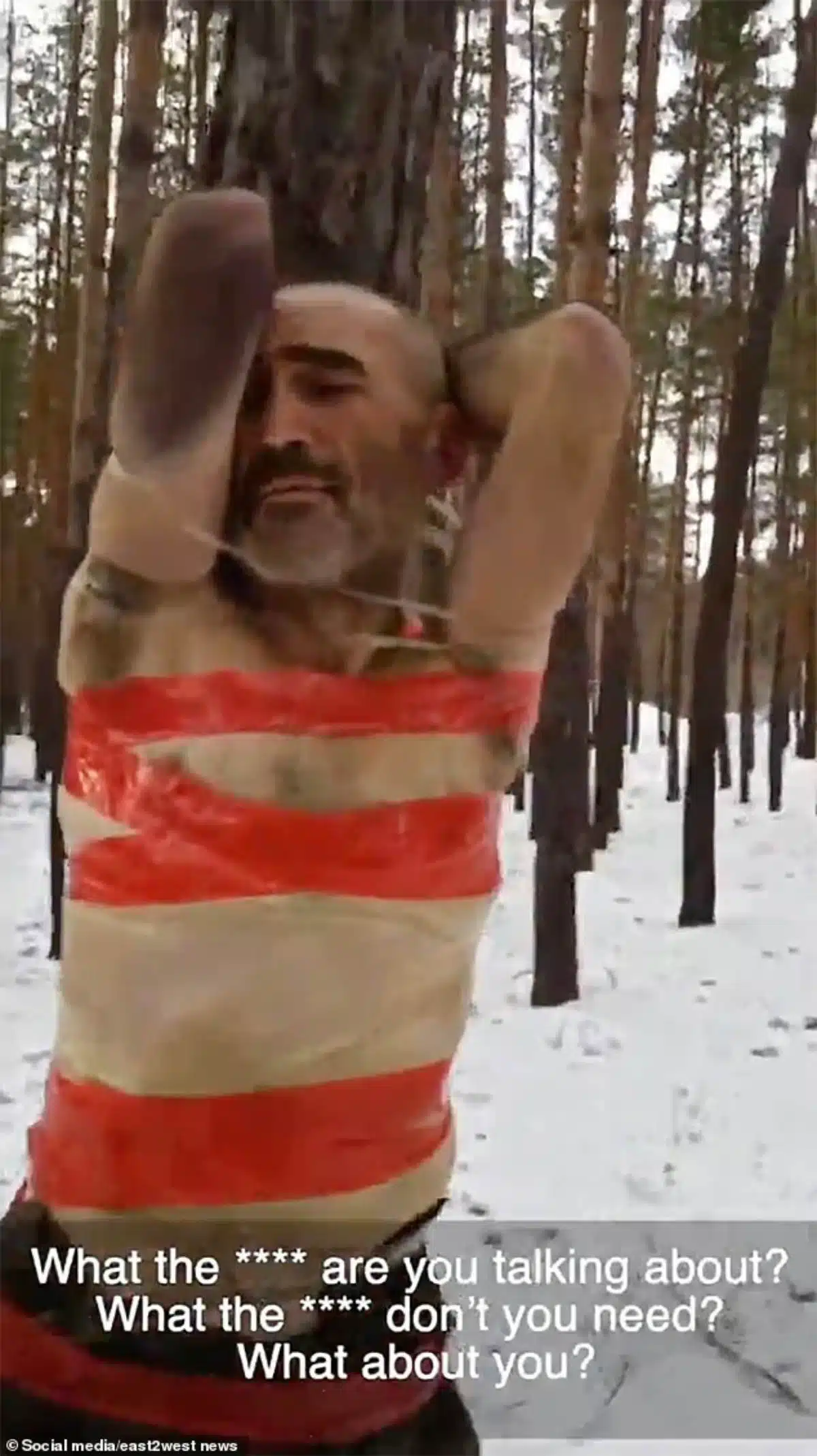 ป่าเถื่อน! คลิป “ทหารรัสเซีย” ทรมานพวกเดียวกัน จับแก้ผ้า-มัดติดต้นไม้บังคับกินหิมะ