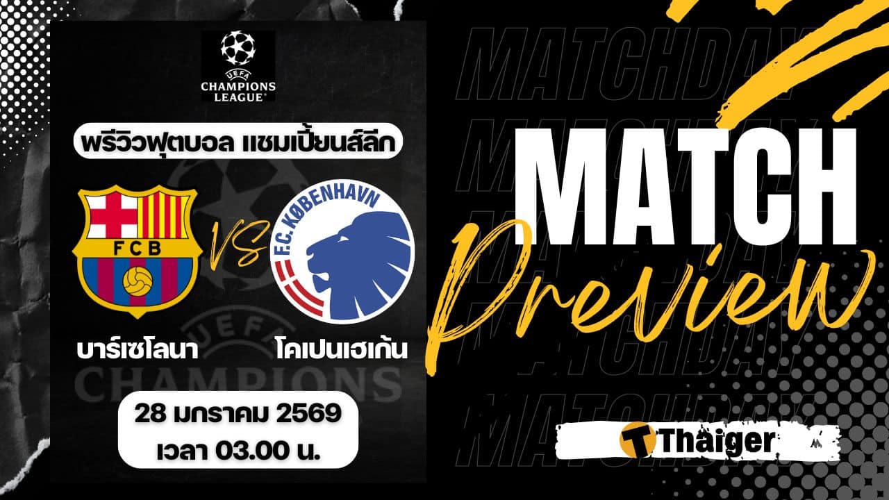 28 มกราคม 69 ดูบอลสด ฟุตบอล ยูฟ่า แชมเปี้ยนส์ ลีก รอบลีกเฟส นัดที่ 8 ระหว่าง บาร์เซโลนา พบ โคเปนเฮเก้น ที่สนาม สปอติฟาย คัมป์ นู เวลา 03:00 น. ตามเวลาประเทศไทย พร้อมถ่ายทอดสด