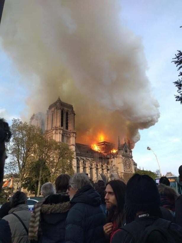 ภาพขณะเพลิงโหมไหม้ วิหารนอเทรอดาม ฝรั่งเศส (ภาพโดย Moreno Mo )
