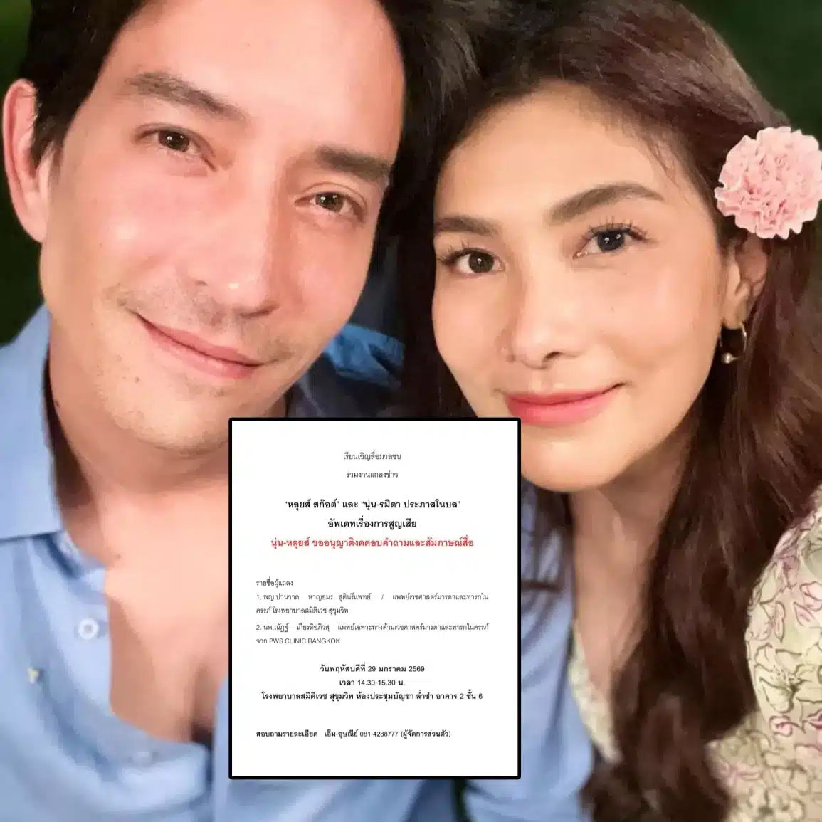 บ่ายวันนี้ (28 ม.ค. 69) เพจ อรรถรส โพสต์รายงานด่วนหลังได้รับหมายเรียนเชิญสื่อมวลชนร่วมงานแถลงข่าวของ หลุยส์ สก๊อต์ และนุ่น รมิดา ในวันพรุ่งนี้ 29 มกราคม 2569 เวลา 14.30-15.30 น. ณ โรงพยาบาลสมิติเวช สุขุมวิท ห้องประชุมบัญชา ล่ำซำ อาคาร 2 ชั้น 6 พร้อมด้วยคุณหมอสูตินรีแพทย์ และแพทย์เฉพาะทางเรื่องมารดาและทารกในครรภ์ ร่วมแถลงข้อมูลทางการแพทย์ด้วย