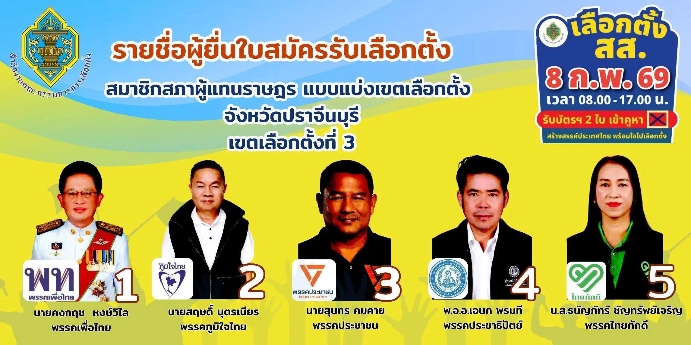 รายชื่อผู้สมัคร สส. ปราจีนบุรี ทั้ง 3 เขต เช็กเบอร์-พรรค เลือกตั้ง 2569
