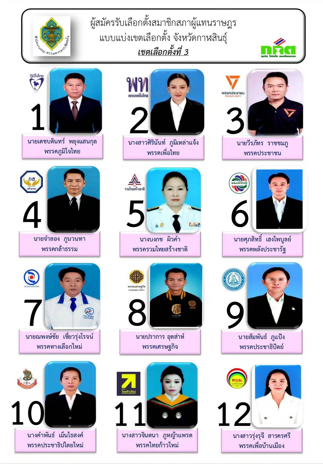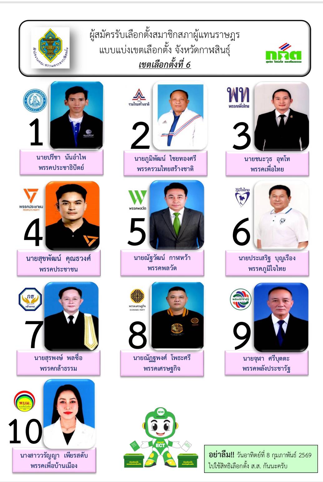 รายชื่อผู้สมัคร สส. กาฬสินธุ์ ทั้ง 6 เขต เช็กเบอร์-พรรค เลือกตั้ง 2569