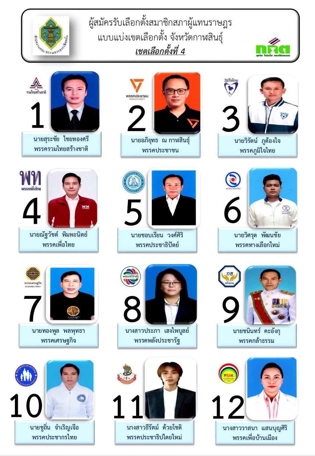 กกต. ประกาศรายชื่อ หมายเลขผู้สมัคร สส. กาฬสินธุ์ อย่างเป็นทางการ ทั้ง 6 เขตเลือกตั้ง เช็กรายชื่อและเบอร์ผู้สมัครได้ที่นี่