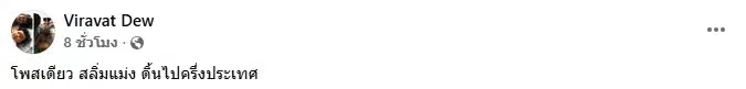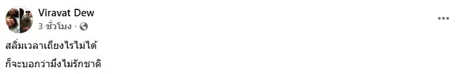 ต่อมา ดิว วีรวัฒน์ โพสต์ข้อความ ระบุว่า “สลิ่มเวลาเถียงไรไม่ได้ ก็จะบอกว่ามึงไม่รักชาติ”