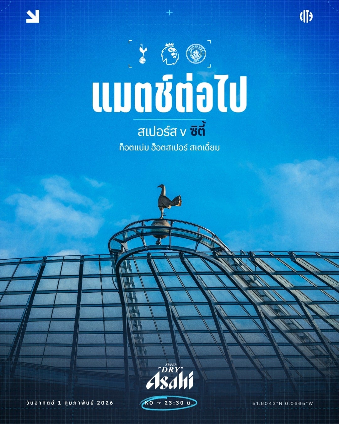 - วัน / เวลาแข่งขัน : วันอาทิตย์ที่ 1 กุมภาพันธ์ 2569 เวลา 23.30 น.