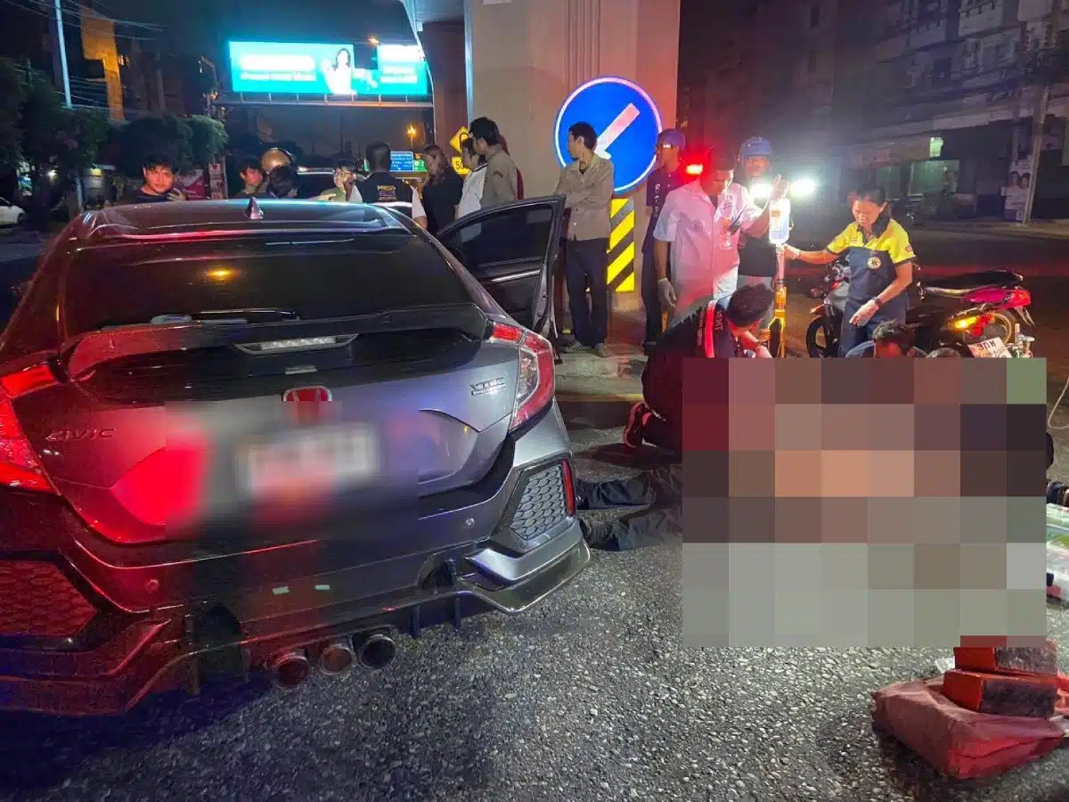 ในที่เกิดเหตุยังพบรถนั่งส่วนบุคคลยี่ห้อฮอนด้า ซีวิค สีดำ ของเจ้าหน้าที่ตำรวจจอดเปิดประตูขวาอยู่บนถนน