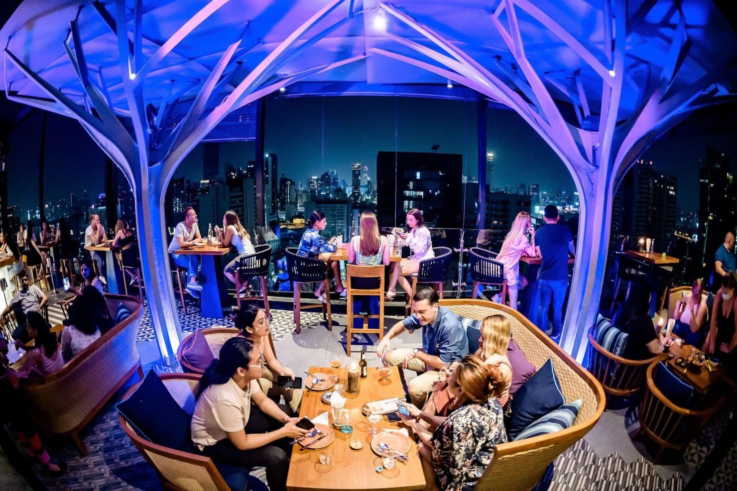 ตั้งอยู่บนชั้น 45 โรงแรม Marriott Sukhumvit เป็นอีกหนึ่งจุดเช็กอินที่มีวิวเส้นขอบฟ้าและดนตรีจากดีเจสดใส แม้จะเน้นเมนูบาร์และของทานเล่นแต่ก็ให้ความโรแมนติกได้ดีเยี่ยม
