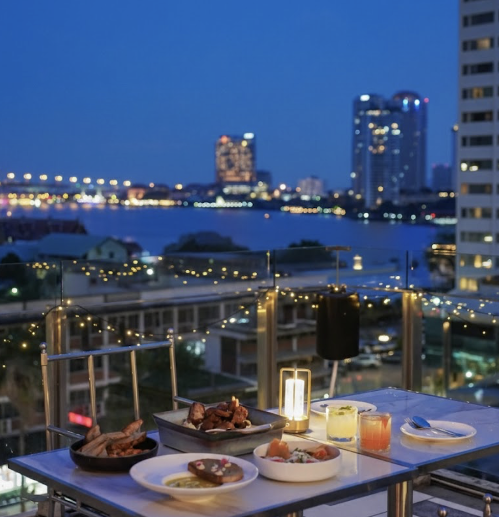 รูฟท็อปชั้น 40 ของโรงแรม Anantara สาทร ที่เปิดรับวิวเมืองและวิวแม่น้ำในมุมกว้าง พร้อมเสิร์ฟอาหารฟิวชันเอเชียสำหรับคู่รักที่ชอบความหลากหลาย