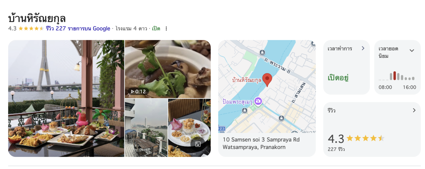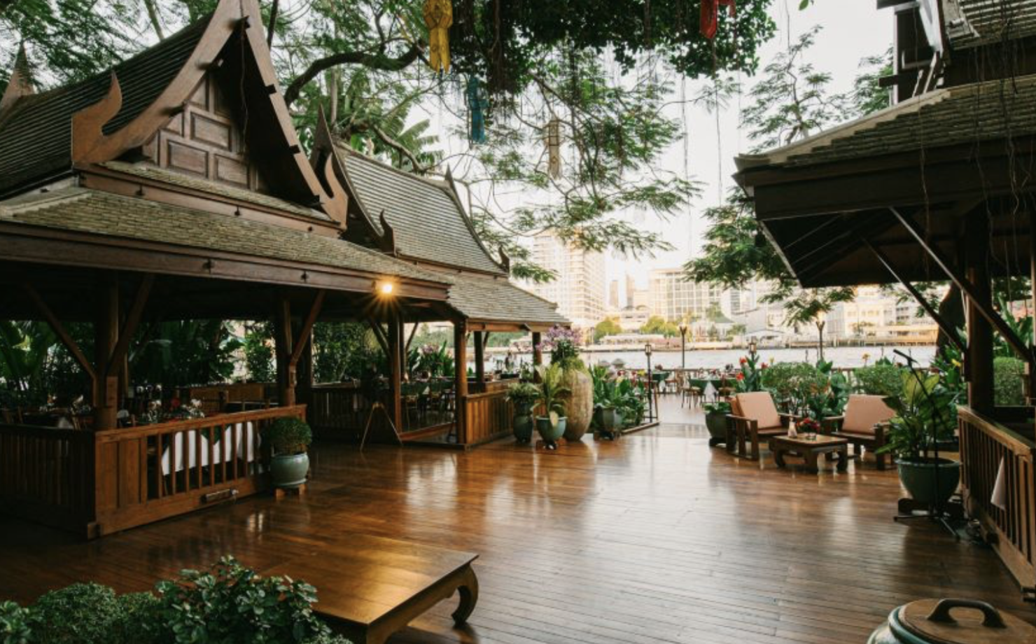 หนึ่งในร้านที่โรแมนติกที่สุดด้วยศาลาไทยไม้สักริมน้ำท่ามกลางสวนสวย บรรยากาศราวกับต้องมนต์ด้วยแสงเทียนและเสียงเพลงบรรเลง พร้อมวิวเส้นขอบฟ้าฝั่งพระนครและอาหารไทยตำรับชาววัง