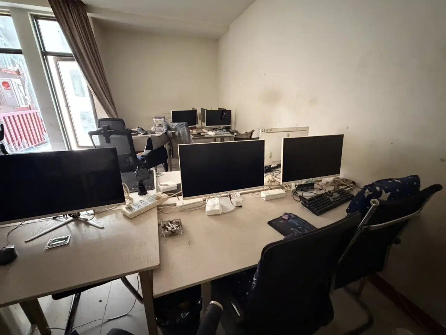 เจ้าหน้าที่ได้ตรวจพบหลักฐานสำคัญที่ชี้ให้เห็นถึงความเชื่อมโยงกับขบวนการต้มตุ๋นระดับโลก คือการจัดสร้าง “ฉากจำลอง” (Mock-up) เป็นสถานที่ราชการและสถาบันการเงิน ทั้งสถานีตำรวจและธนาคารของหลายประเทศ เพื่อใช้สร้างความน่าเชื่อถือเวลาวิดีโอคอลหลอกเหยื่อ นอกจากนี้ ยังพบรายชื่อเหยื่อ เครื่องแบบตำรวจ อุปกรณ์อิเล็กทรอนิกส์ และของใช้ส่วนตัวจำนวนมากทิ้งกระจัดกระจายอยู่ทั่วบริเวณ