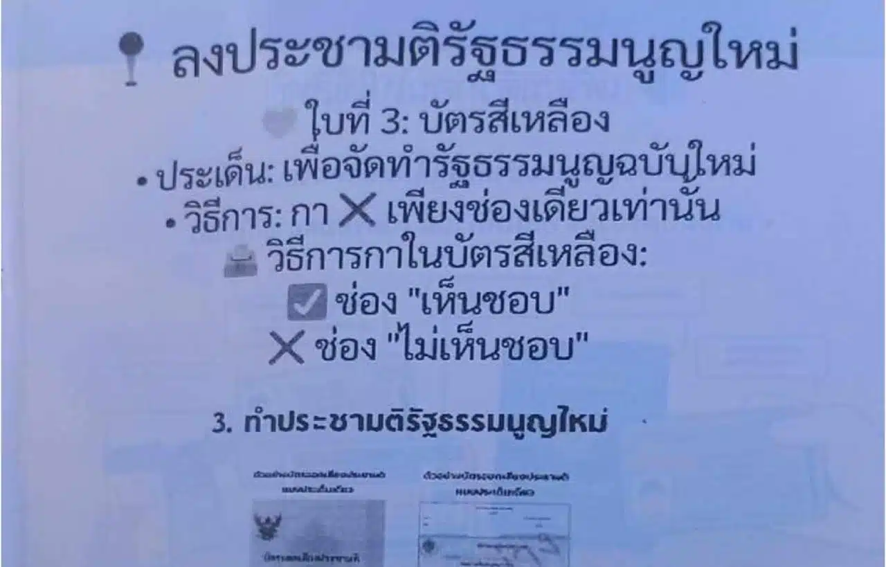 เพจดังเตือน ใบปลิวที่สุพรรณฯ หลอกให้กาถูกลงประชามติ หากเห็นชอบ ทำบัตรเสีย ย้ำให้กากบาทเท่านั้น มิเช่นนั้นคะแนนเสียงหาย