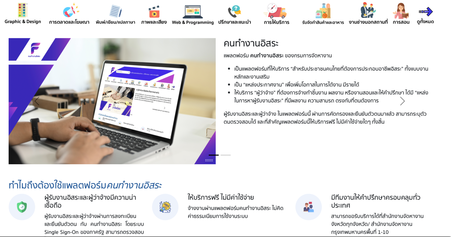 รัฐบาลโดยกรมการจัดหางาน กระทรวงแรงงาน ได้เดินหน้าส่งเสริมให้ประชาชนมีรายได้และอาชีพที่มั่นคง ด้วยการพัฒนาแพลตฟอร์มดิจิทัลชื่อว่า “คนทำงานอิสระ” เพื่อเป็นศูนย์กลางตลาดงานออนไลน์ที่ทันสมัยและครบวงจร รองรับทั้งผู้ที่ต้องการว่าจ้างงาน และผู้ที่ต้องการหารายได้เสริม ไม่ว่าจะเป็นพนักงานประจำ ผู้ประกอบอาชีพอิสระ หรือผู้ว่างงานที่มีทักษะฝีมือ
