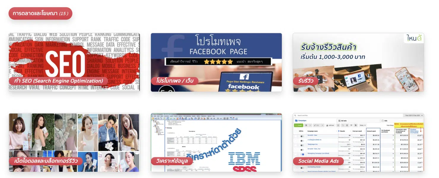 แพลตฟอร์มนี้รวบรวมงานหลากหลายสาขา แบ่งเป็น 10 หมวดหลัก เพื่อให้สอดคล้องกับความต้องการของตลาด ได้แก่