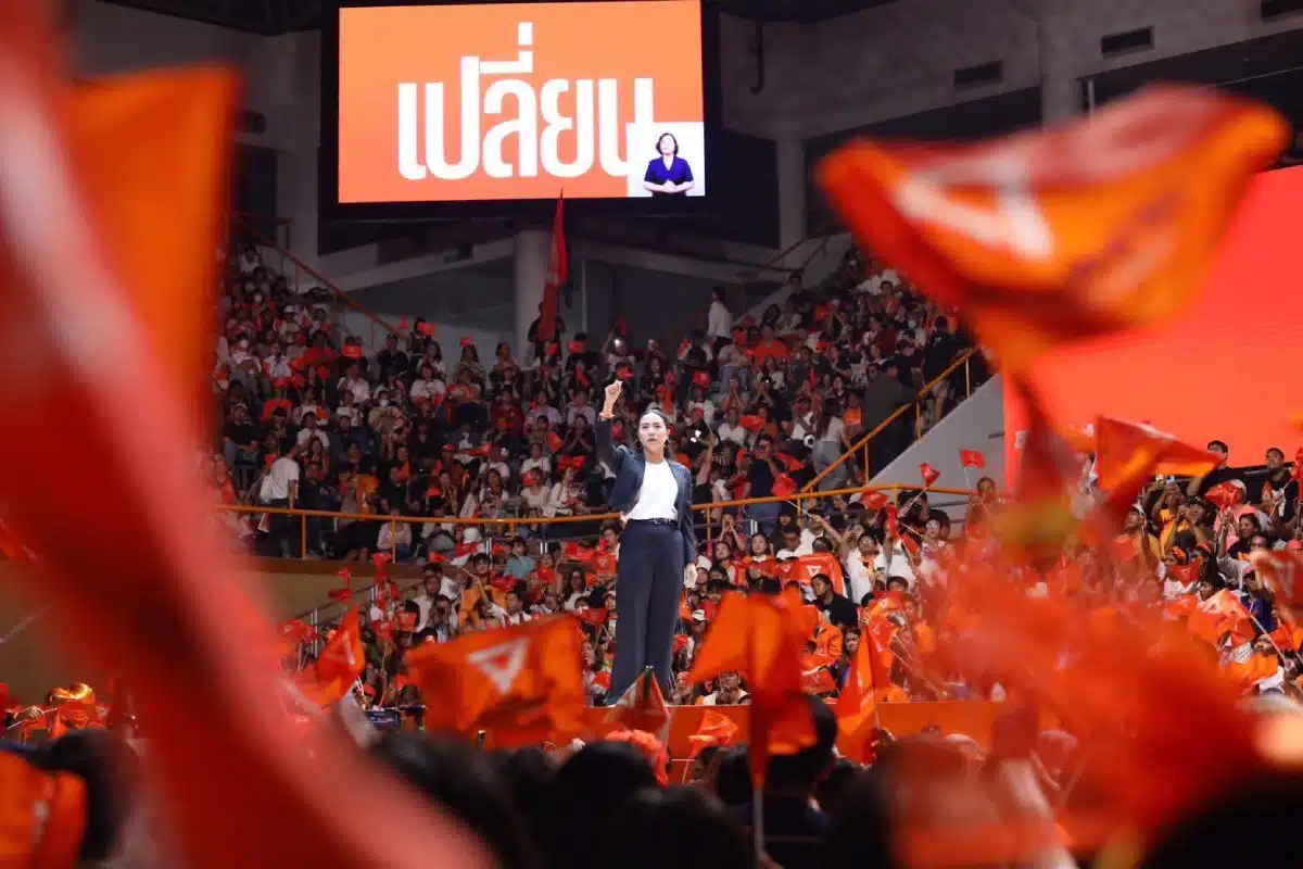 วานนี้ (6 ก.พ.69) ณ อาคารกีฬาเวสน์ 1 ศูนย์กีฬาไทย-ญี่ปุ่น ดินแดง พรรคประชาชน (ปชน.) จัดเวทีปราศรัยใหญ่ครั้งสุดท้ายก่อนเลือกตั้ง 8 ก.พ. ภายใต้แคมเปญ “เปลี่ยน” โดยมีแกนนำและ 3 แคนดิเดตนายกฯ นำโดย นายวีระยุทธ กาญจน์ชูฉัตร, น.ส.ศิริกัญญา ตันสกุล และปิดท้ายด้วย นายณัฐพงษ์ เรืองปัญญาวุฒิ หัวหน้าพรรค ท่ามกลางแฟนคลับ “ด้อมส้ม” ที่มารวมตัวกันจนล้นฮอลล์