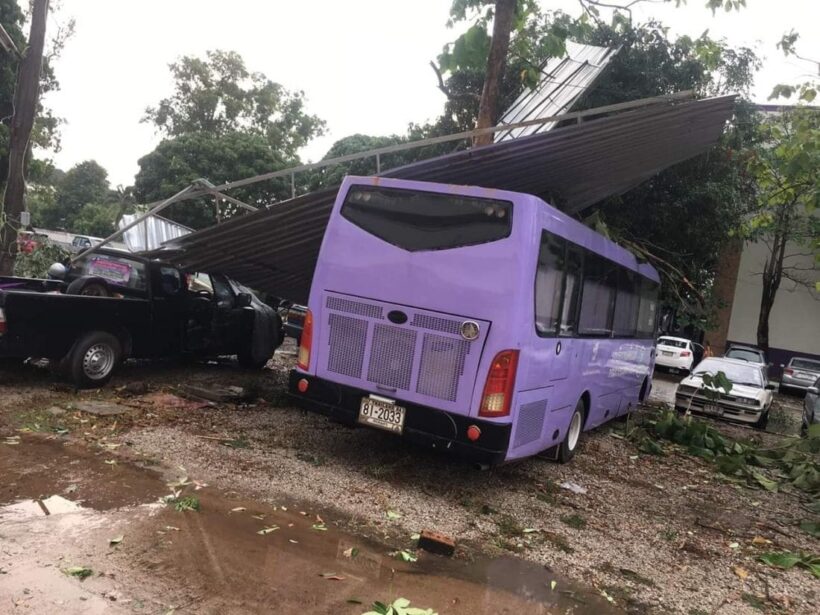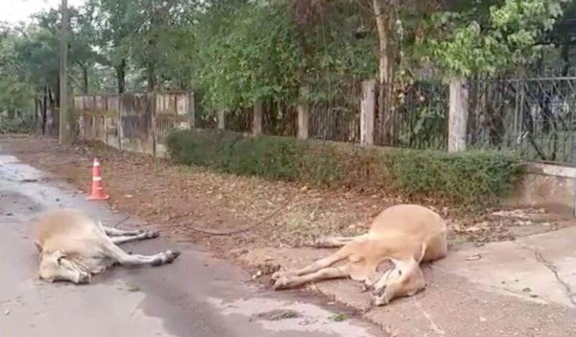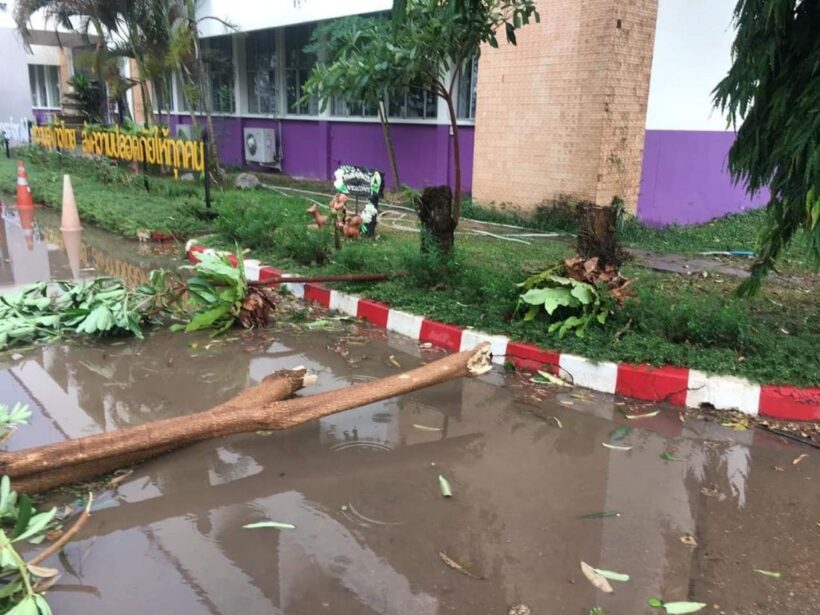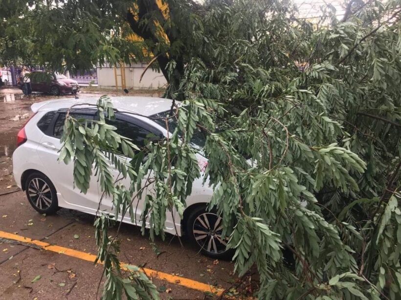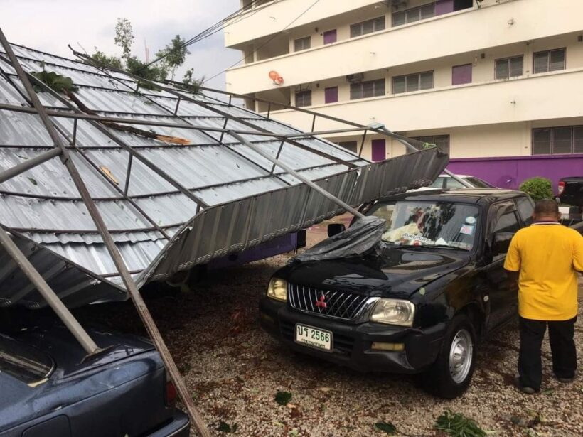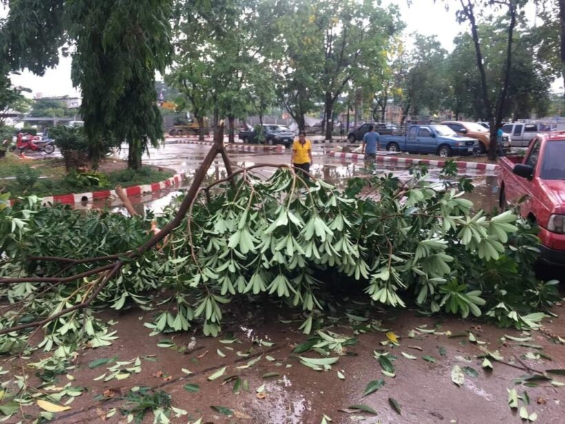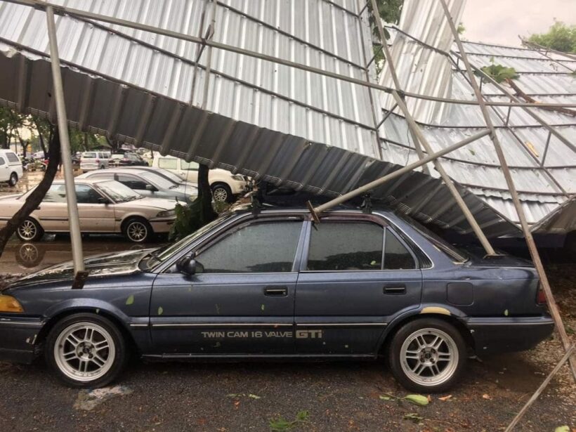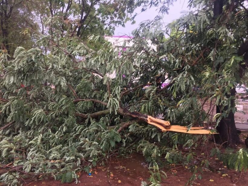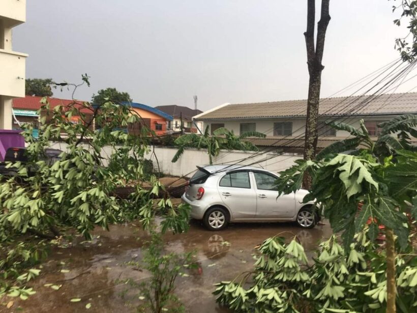 พายุฤดูร้อนถล่ม อ.เมือง สกลนคร ต้นไม้หักทับรถยนต์หลายคัน วัวตาย 2 – คลิป