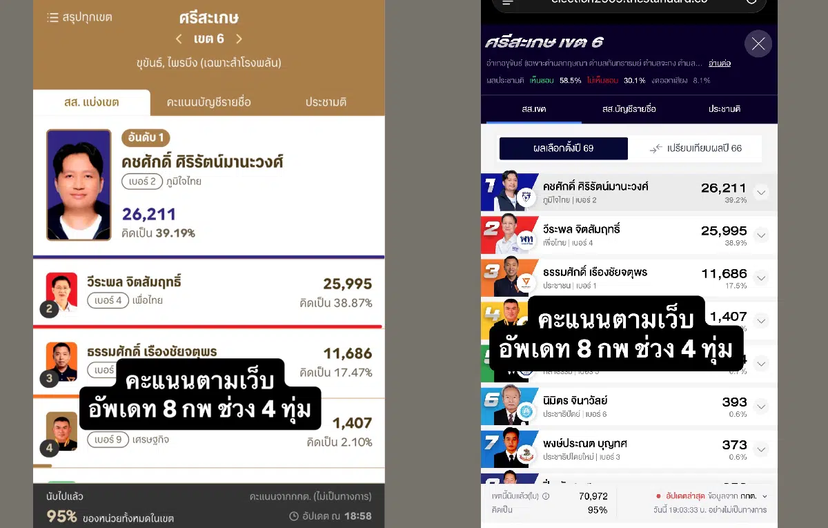 ศึกเลือกตั้งยังไม่จบ! ว่าที่ สส.ศรีสะเกษ เขต 6 งัดหลักฐานโชว์ คะแนนหน้าเว็บไม่ตรงหน้าหน่วย จี้ กกต. แก้ไขด่วน ด้าน “ภูมิธรรม” โพสต์เดือด ยกเคสชลบุรีโมเดลอัด กกต. ลอยตัวเหนือปัญหาไม่ได้ ขู่เช็คบิลผู้กระทำผิด