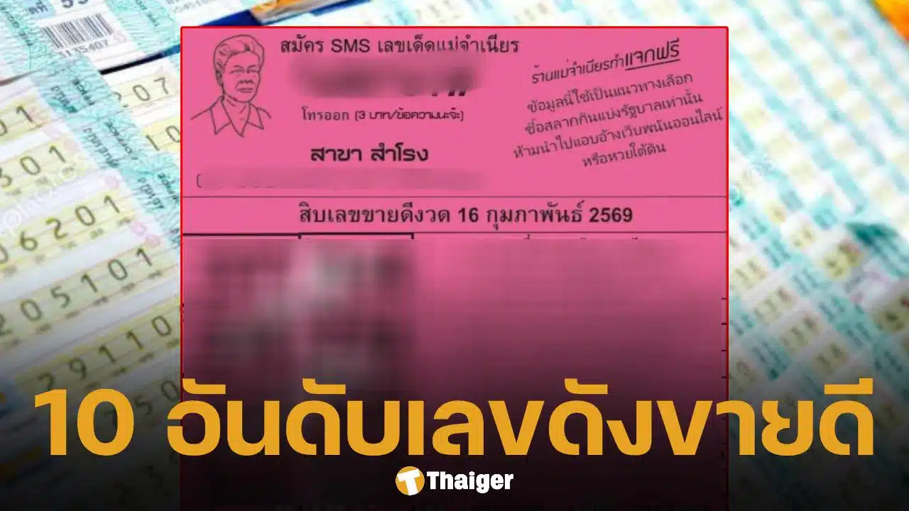 10 อันดับเลขขายดี แม่จำเนียร หวยใบชมพู งวด 16 ก.พ. 69