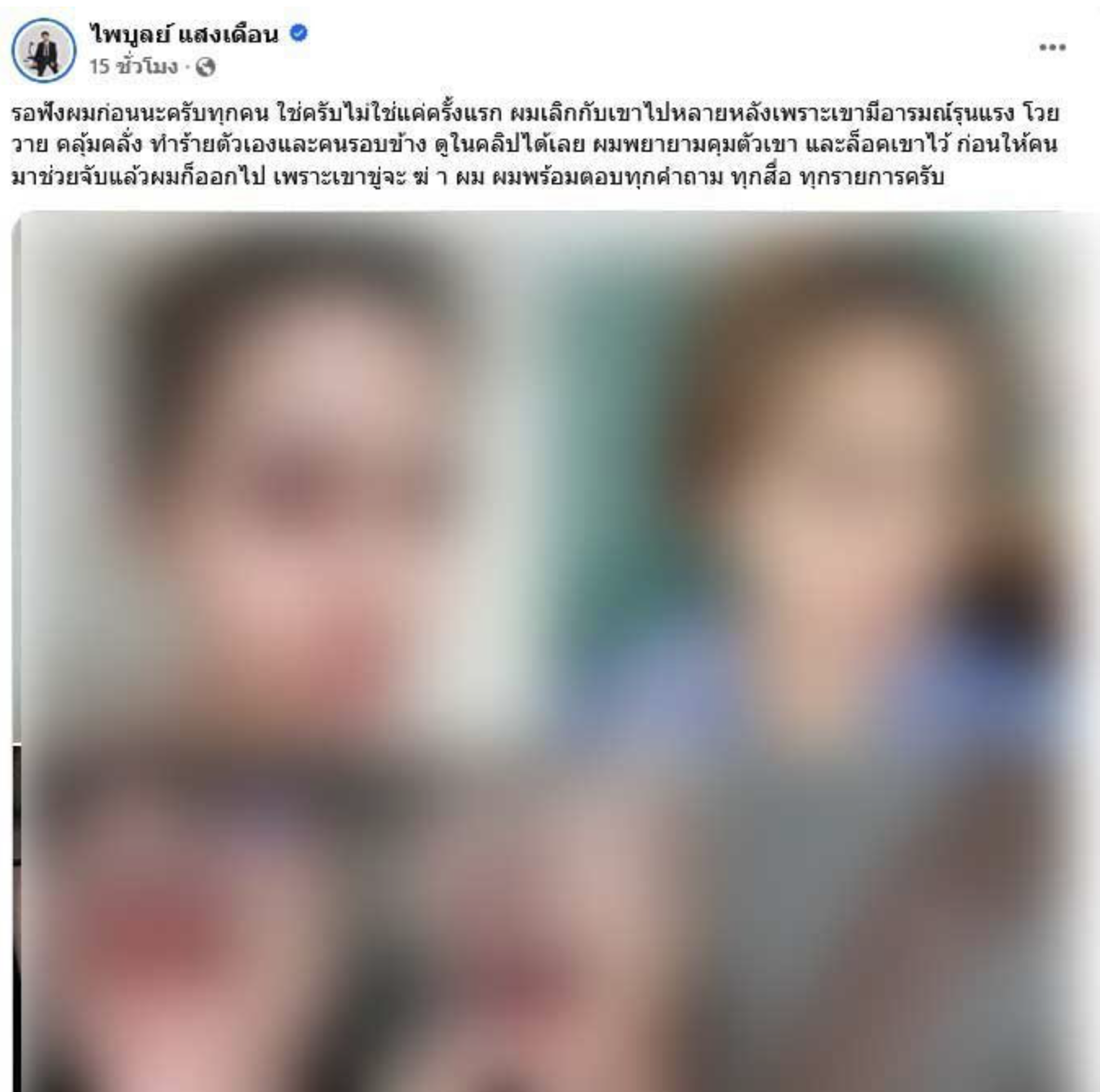 “รอฟังผมก่อนนะครับทุกคน… ใช่ครับไม่ใช่แค่ครั้งแรก ผมเลิกกับเขาไปหลายครั้งเพราะเขามีอารมณ์รุนแรง โวยวาย คลุ้มคลั่ง ทำร้ายตัวเองและคนรอบข้าง”