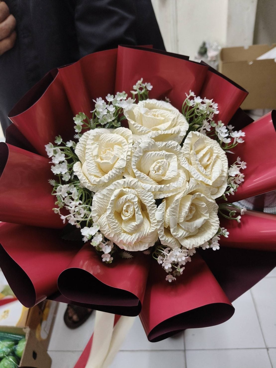 เรื่องมีอยู่ว่า มีลูกค้าท่านหนึ่งเดินเข้ามาที่ร้านของคุณ Monchaya พร้อมกับหอบช่อดอกไม้มาด้วย แจ้งพนักงานว่าอยากให้ช่วย “จัดช่อใหม่” ให้หน่อย เมื่อพนักงานรับเรื่องและนำดอกไม้เข้ามาหลังร้าน เจ้าของร้านเห็นปุ๊บก็เกิดอาการเอ๊ะในใจทันที เพราะรูปร่างหน้าตาของดอกไม้กระดาษในช่อมันดูแปลกๆ ทะแม่งๆ จนแอบคิดว่าลูกค้าน่าจะตั้งใจเอาไปแกล้งแฟนหรือเปล่า?