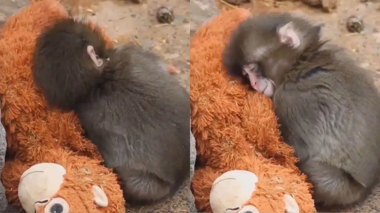 พั้นช์คุง ลิงหิมะกำพร้า ฝูงไม่รับ-ข่มขู่ น้ำตาซึม กอดตุ๊กตาเยียวยาใจ