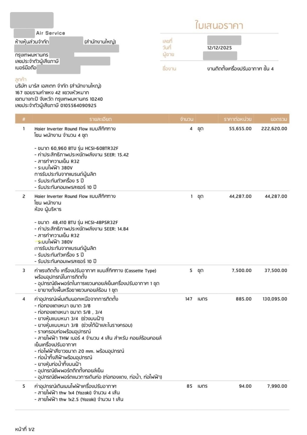 “เพชร กรุณพล” เปิดใบเสร็จติดตั้งแอร์ โต้ข้อกล่าวหาปกปิดศูนย์ IO