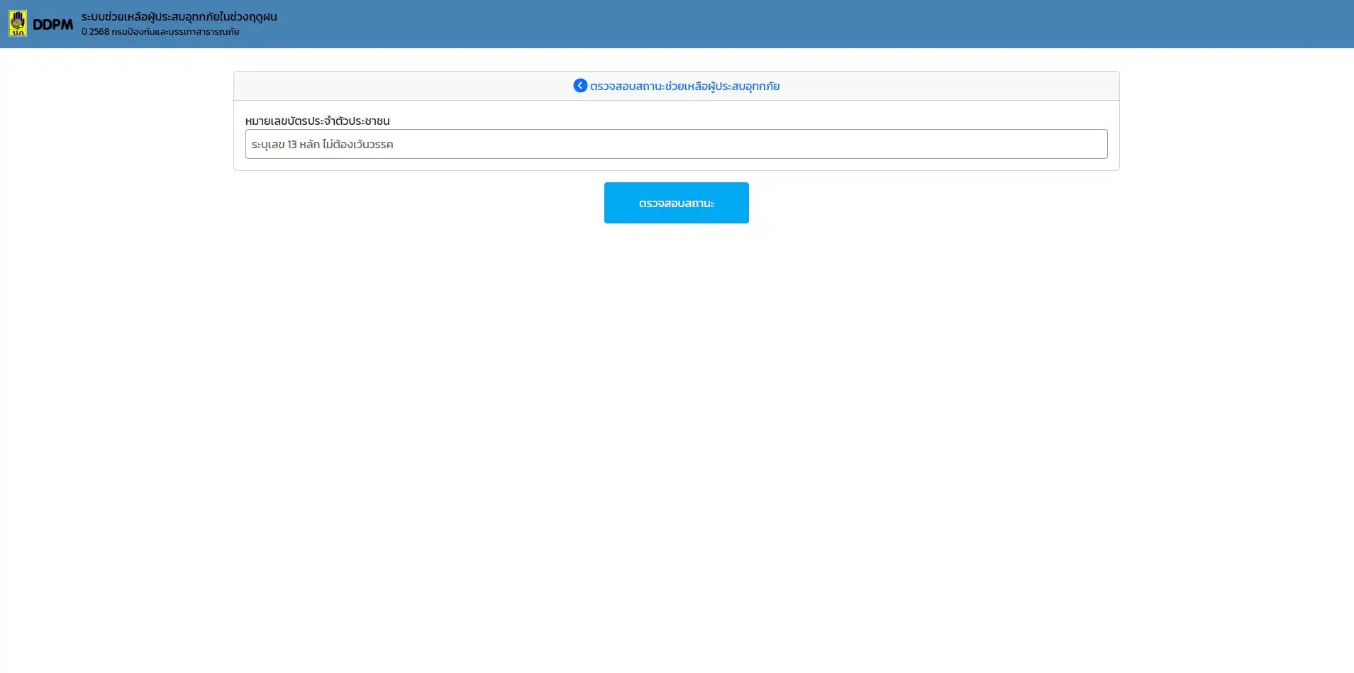 - กรอกหมายเลขประจำตัวประชาชน 13 หลัก และคลิกปุ่ม “ตรวจสอบสถานะ”