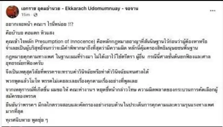 ทั้งนี้จากการตรวจสอบล่าสุดพบว่าโพสต์ดังกล่าวหายไปจากหน้าเฟซบุ๊กของนายเอกราชแล้ว