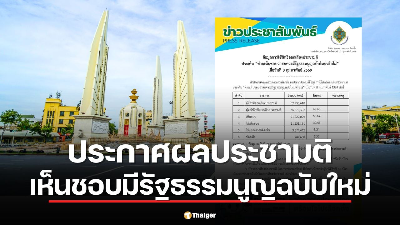 เมื่อวันที่ 27 กุมภาพันธ์ 2569 เวลา 12:26 น. สำนักงานคณะกรรมการการเลือกตั้ง (กกต.) ได้เผยแพร่ผลการออกเสียงประชามติอย่างเป็นทางการ ในประเด็นคำถามที่ว่า “ท่านเห็นชอบว่าสมควรมีรัฐธรรมนูญฉบับใหม่หรือไม่” ซึ่งได้จัดการลงคะแนนไปเมื่อวันที่ 8 กุมภาพันธ์ 2569 ที่ผ่านมา