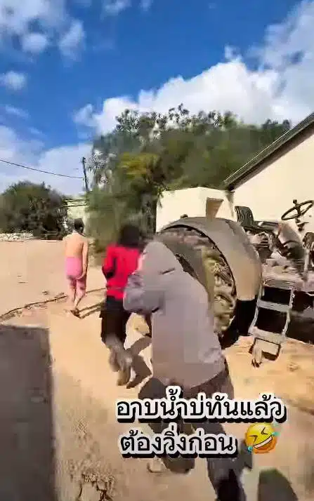 โดยเจ้าของเพจโพสต์คลิปขณะที่แรงงานไทยวิ่งหนีเข้าบังเกอร์หลบภัย พร้อมเขียนข้อความว่า “อาบน้ำบ่ทันแล้ว ต้องวิ่งก่อน” ซึ่งในคลิปแสดงให้เห็นถึงแรงงานไทยวิ่งหนีเข้าบังเกอร์ แม้จะยังอาบน้ำไม่เสร็จ นุ่งผ้าถุงตัวเดียว ท่ามกลางเสียงไซเรนที่ดังแจ้งเตือน