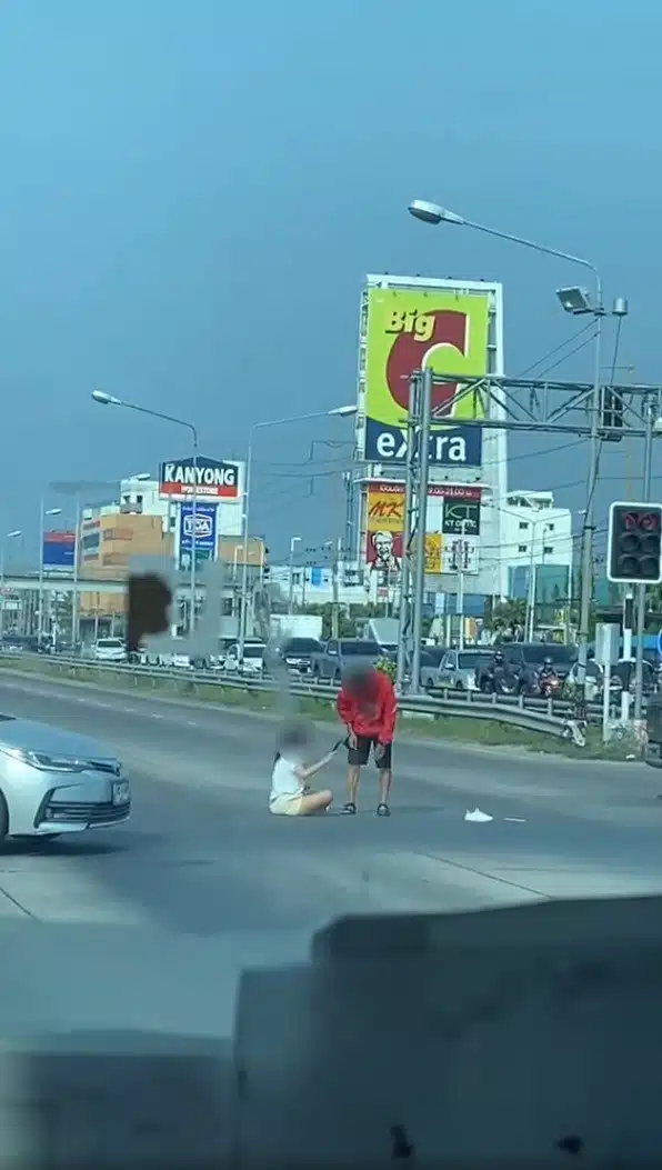 เฉลยไวรัล สาวนั่งงอนแฟนกลางถนน ปาของ-เขวี้ยงรองเท้า ที่แท้เพราะสาเหตุนี้