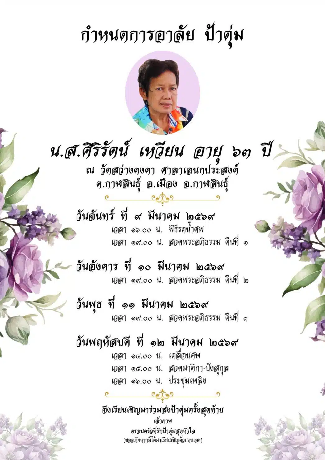 กำหนดการอาลัย ป้าตุ่ม สุดที่รักของไอซ์