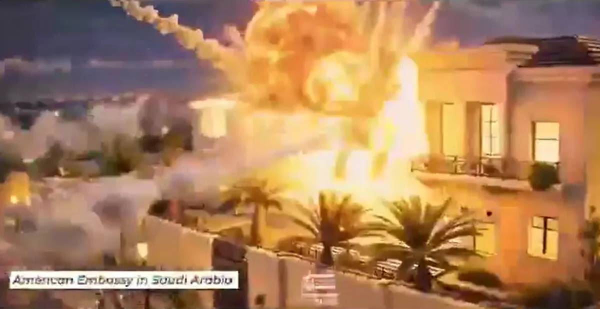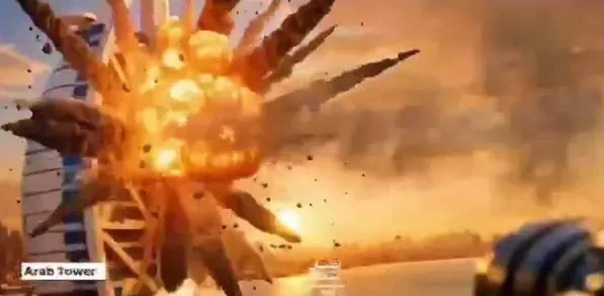 จากนั้นจะเห็นโรงแรมเรือใบบุรจญ์อัลอาหรับ (Burj Al Arab) ถูกระเบิดพังทลาย ซึ่งขัดแย้งกับความเป็นจริงที่โรงแรมได้รับความเสียหายเพียงเล็กน้อยจากเศษโดรนที่ถูกสกัดได้ และมีภาพขีปนาวุธพุ่งถล่มฐานทัพอากาศ RAF Akrotiri ฐานทัพอากาศอังกฤษบนเกาะไซปรัส ซึ่งในเหตุการณ์จริงเมื่อวันที่ 1 มีนาคม มีโดรนกามิกาเซ่พุ่งชนโรงเก็บเครื่องบินจารกรรม U-2 จนเป็นรูขนาดใหญ่