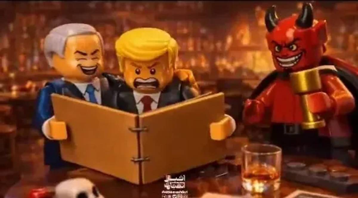 ในคลิปดังกล่าวมีการสร้างตัวละครเลโก้เลียนแบบบุคคลสำคัญอย่าง โดนัลด์ ทรัมป์ และ เบนจามิน เนทันยาฮู ยืนอยู่กับปีศาจ ก่อนจะกดปุ่มสีแดงเพื่อโจมตีอิหร่าน จากนั้นอิหร่านจึงตอบโต้ด้วยขีปนาวุธถล่มเป้าหมายต่างๆ ทั่วภูมิภาค