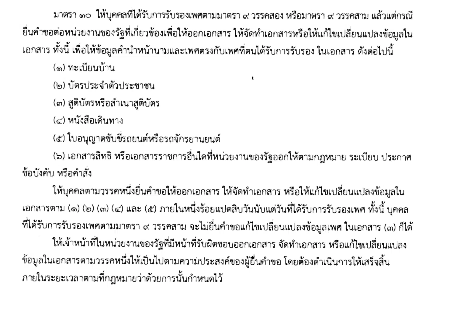 แพรรี่ โพสต์ภาพเอกสารร่างกฎหมาย “มาตรา ๑๐” ซึ่งมีเนื้อหาเปิดทางให้บุคคลที่ได้รับการรับรองเพศแล้ว (ตามมาตรา ๙) สามารถยื่นคำขอต่อหน่วยงานรัฐเพื่อออกเอกสารใหม่ หรือแก้ไขเปลี่ยนแปลงข้อมูลในเอกสาร เพื่อให้คำนำหน้านามและเพศตรงกับที่ได้รับการรับรอง