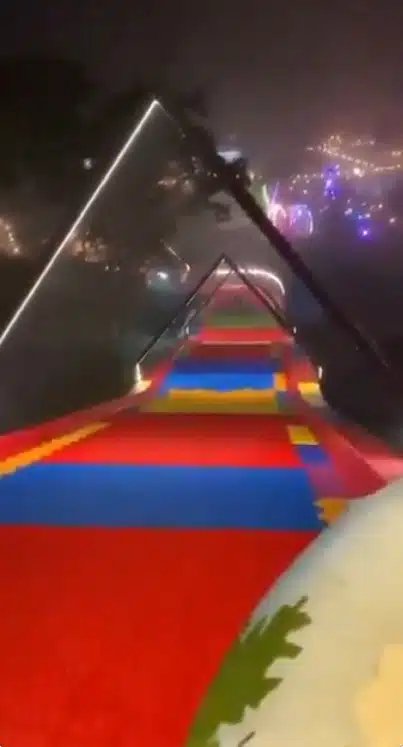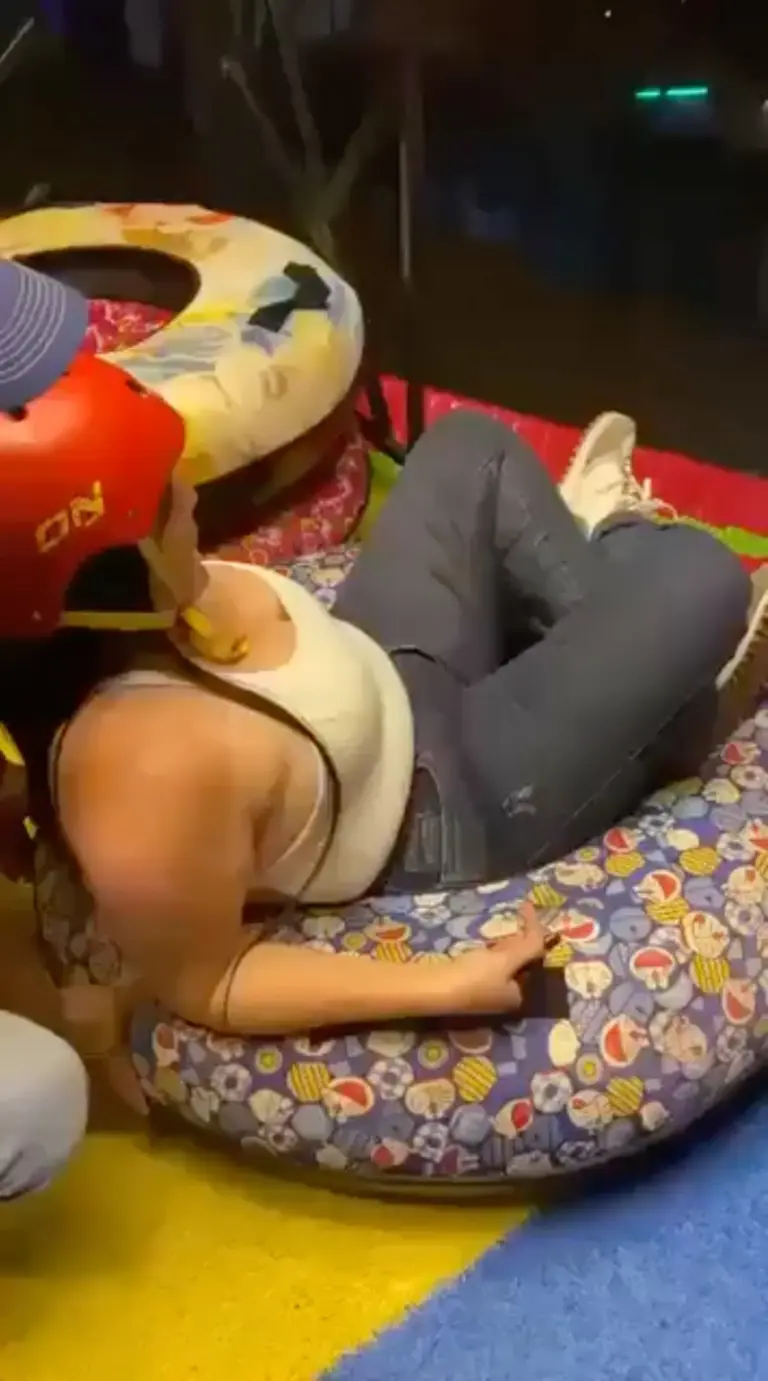 ภาพจากคลิปวิดีโอเผยให้เห็นเจ้าตัวที่นั่งอยู่บนห่วงยางยางเตรียมตัวสไลด์ลงมา ซึ่งมีท่าทีหวาดกลัว เธอได้เอ่ยปากถามพนักงานควบคุมเครื่องเล่นด้วยความกังวลใจว่า “จะมีคนคอยรับฉันอยู่ข้างล่างใช่ไหม?” ฝั่งพนักงานควบคุมเครื่องเล่นตอบกลับไปว่า “มีครับ ไม่ต้องกลัว” ก่อนที่จะผลักห่วงยางของเธอให้พุ่งลงไปตามรางสไลเดอร์ยักษ์