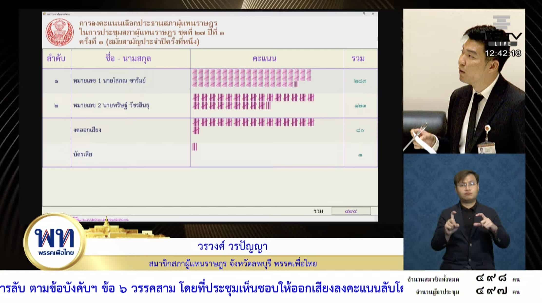 ไอติม พริษฐ์ แพ้ โสภณ ซารัมย์ ชวดนั่งเก้าอี้ประธานสภา คะแนนทิ้งห่างขาดลอย