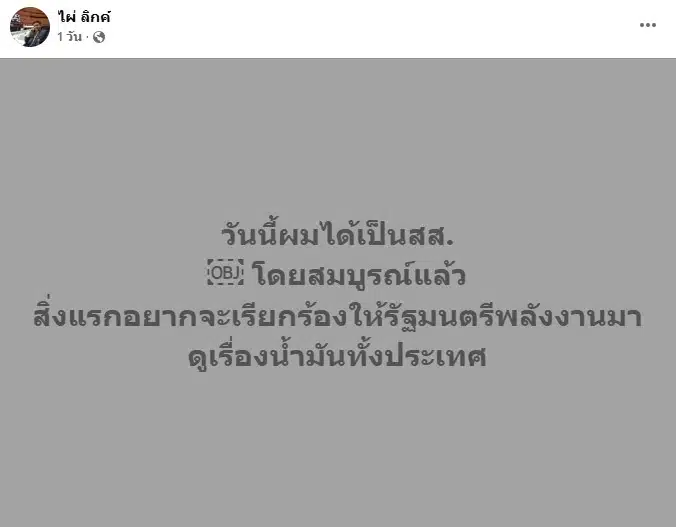 นายไผ่ ลิกค์ สส.กำแพงเพชร พรรคกล้าธรรม โพสต์ข้อความผ่านเฟซบุ๊ก เมื่อวันที่ 15 มี.ค.ที่ผ่านมา โดยระบุว่า “วันนี้ผมได้เป็น สส. โดยสมบูรณ์แล้ว สิ่งแรกอยากจะเรียกร้องให้รัฐมนตรีพลังงานมาดูเรื่องน้ำมันทั้งประเทศ”