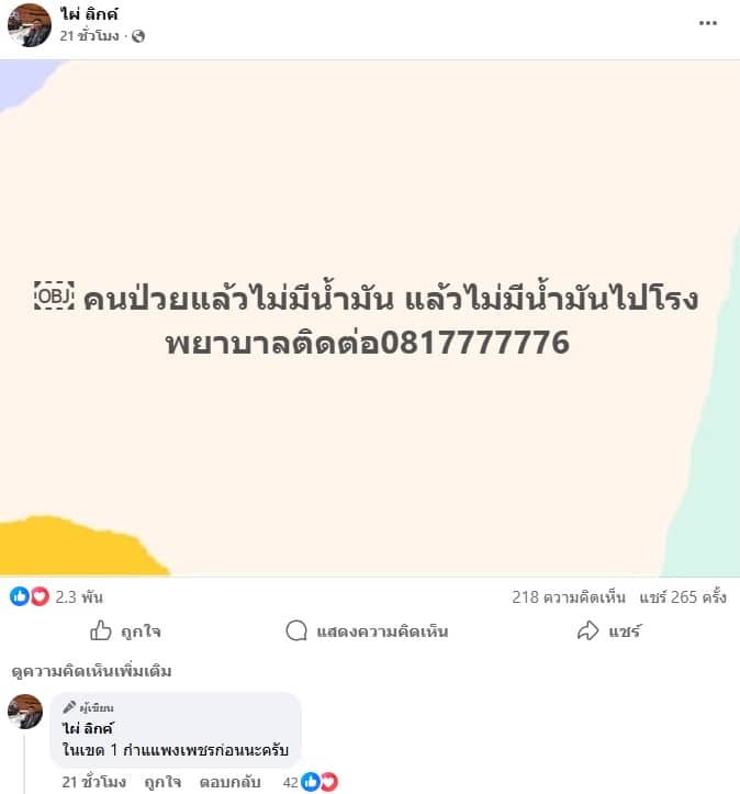 ไผ่ ลิกค์ จี้ รมว.พลังงาน แก้วิกฤตน้ำมัน ผุดสายด่วนช่วยผู้ป่วยกำแพงเพชร