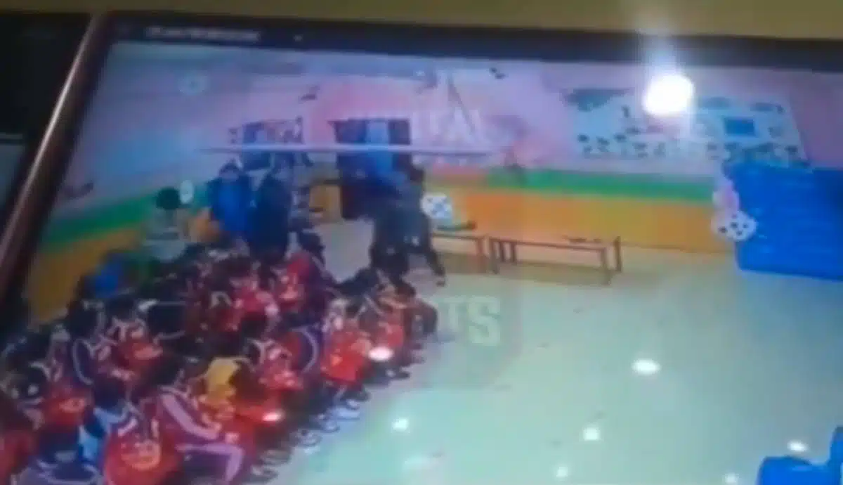 ในคลิปเผยให้เห็นครูสาวกำลังระเบิดอารมณ์และลงมือทุบตีเด็กหญิงอย่างต่อเนื่อง ด้วยความโกรธแค้นที่เห็นลูกถูกทำร้าย คุณพ่อรีบพุ่งตัวเข้าไปในห้องเรียนและดึงตัวลูกสาวออกห่างจากครูทันที โดยในจังหวะนั้นเขาได้ลงมือสั่งสอนครูคืนด้วยการทุบตีในลักษณะเดียวกันจนเกิดการตะลุมบอน