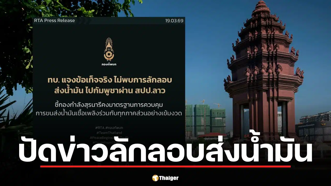 “ทบ. แจงข้อเท็จจริง ไม่พบการลักลอบส่งน้ำมันไทยไปกัมพูชาผ่านลาว ชี้กองกำลังสุรนารีคงมาตรฐานการควบคุมการขนส่งน้ำมันเชื้อเพลิงร่วมกับทุกภาคส่วนอย่างเข้มงวด