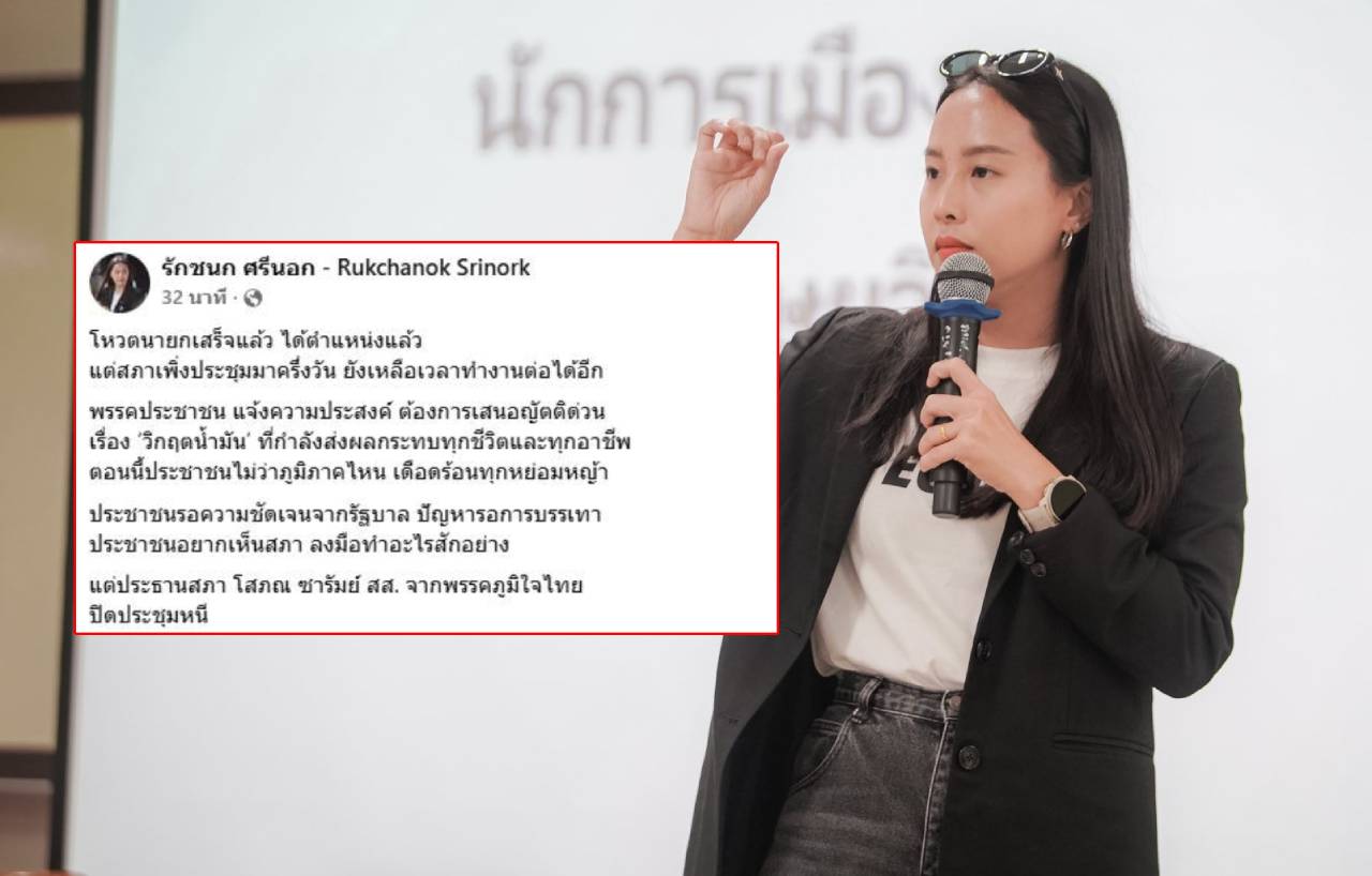 ไอซ์ รักชนก และ พรรคประชาชน โวยเสนอญัตติด่วนเรื่องราคาน้ำมัน แต่ประธานสภาปิดประชุมหนี ย้ำวิกฤติพลังงานกระทบทุกชีวิต