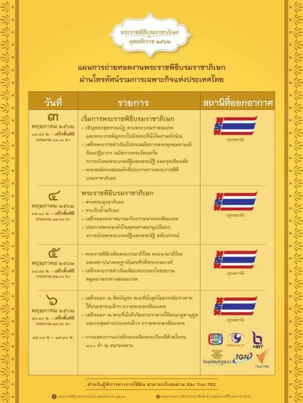 #พระราชพิธีบรมราชาภิเษก #ตารางถ่ายทอดสดพระบรมราชาภิเษก