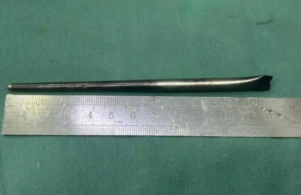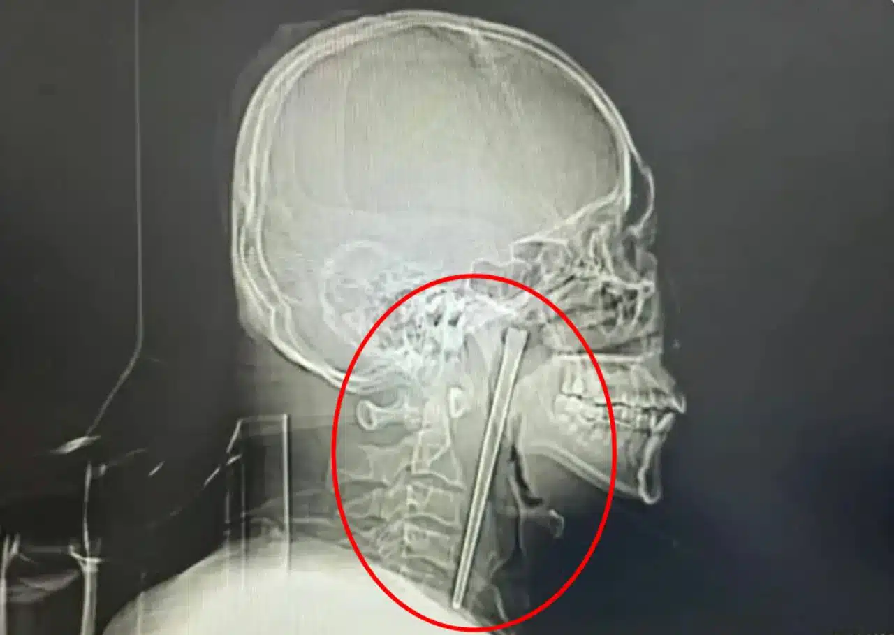 ช่วย “อาหวัง” หลังตะเกียบยาว 12 เซนติเมตรติดคอ ทนเจ็บนาน 8 ปี เมาเผลอกลืนตะเกียบลงไปด้วย แพทย์ต้องผ่าตัดเอาออก